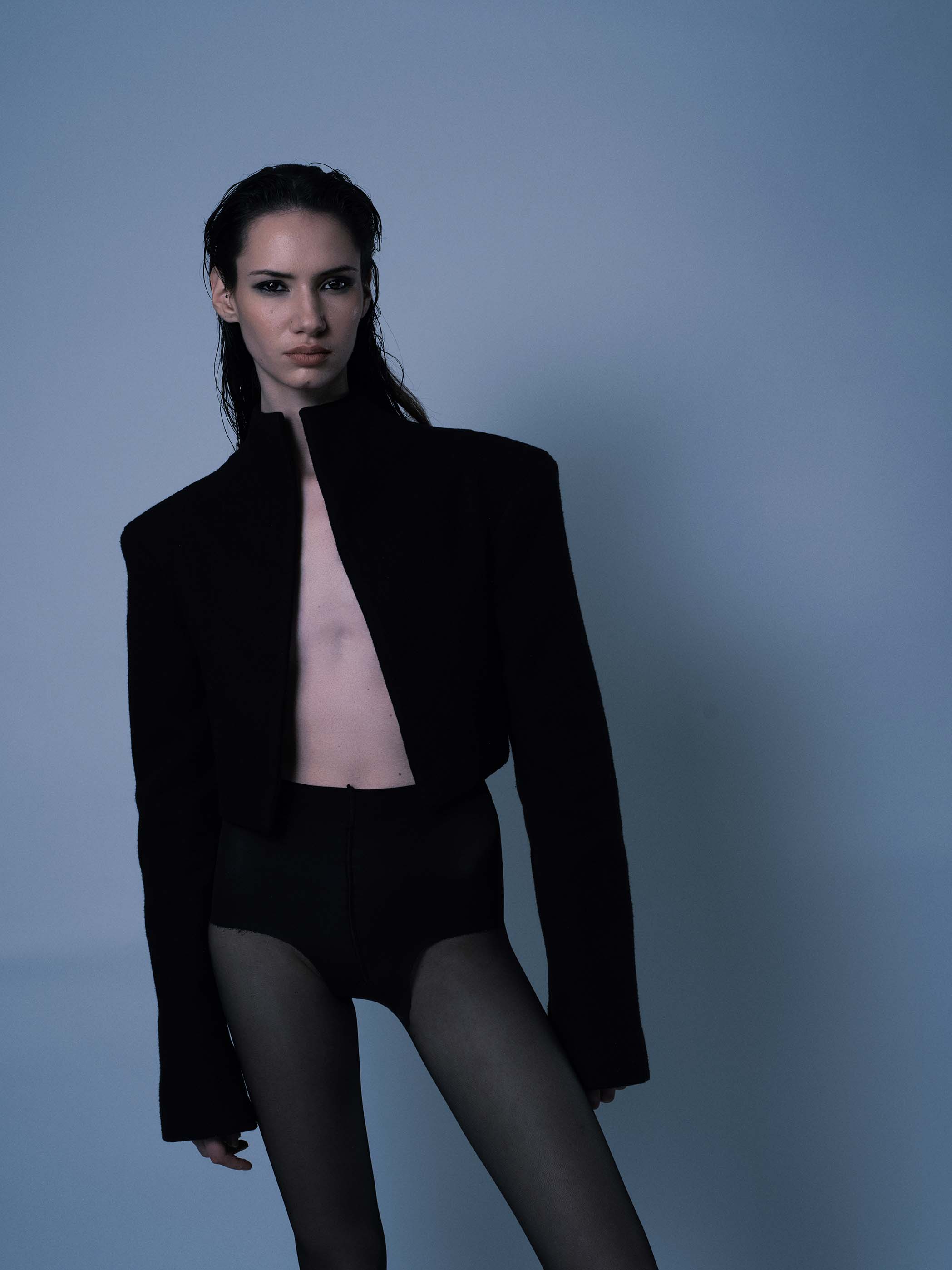 This collection is defined by sharp, unbroken lines, offering a clear and strong aesthetic. Darts and waistlines play a pivotal role in its structure, deliberately accentuating the garments' geometric precision. This meticulous attention to detail evokes a mastery of form, where every element serves a purpose, and nothing is superfluous. With this collection, I aimed to create a timeless style - one that transcends fleeting trends and endures beyond the ephemeral.